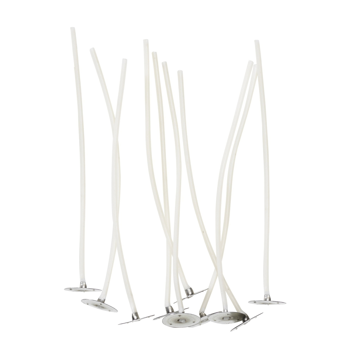 Vokset veke nr. 5 til lys av raps- / soyavoks, 10 stk. Med vekeholder. Lengde 10 cm