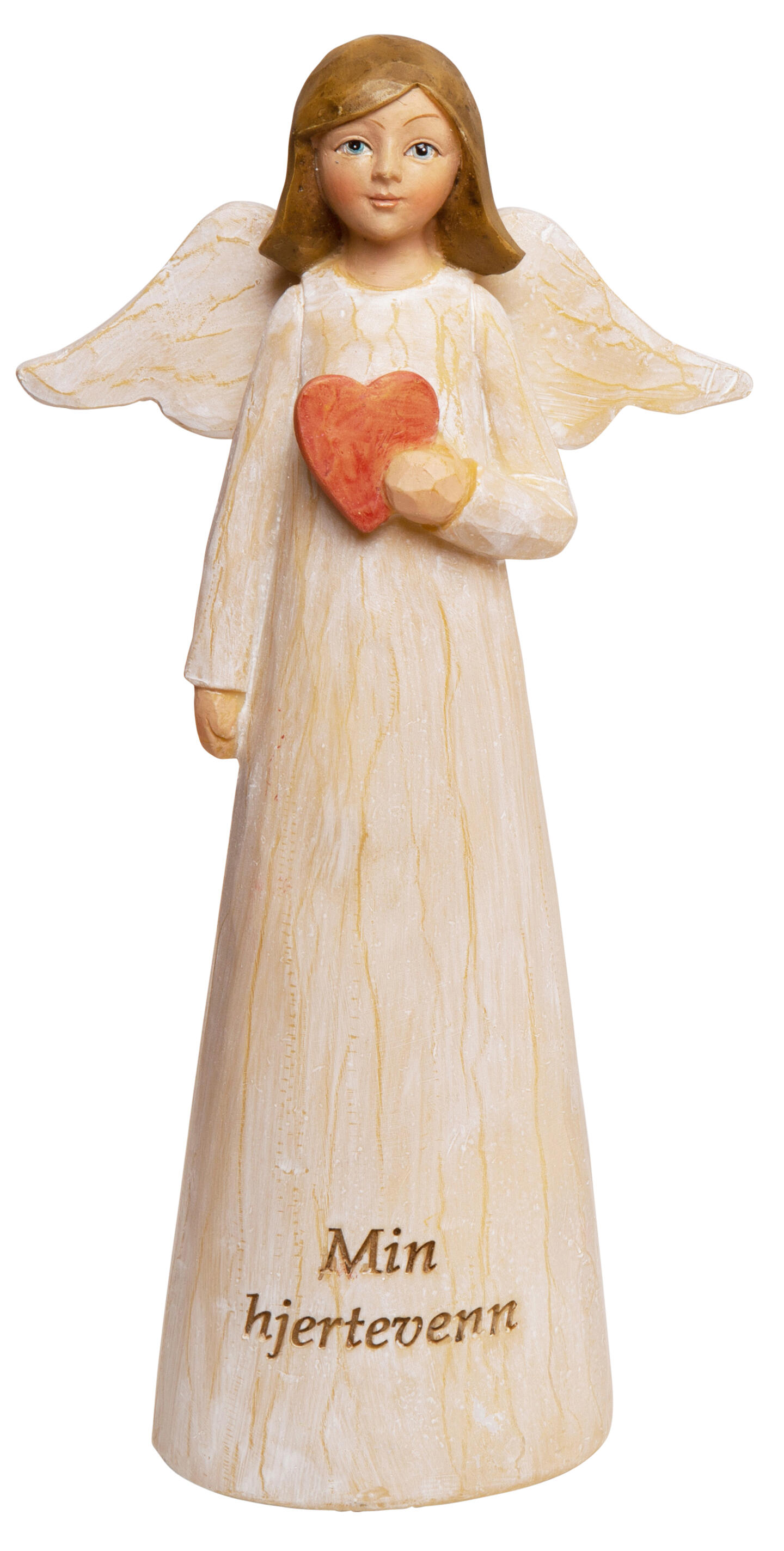 Engel med tekst og hjerte: "Min hjertevenn"