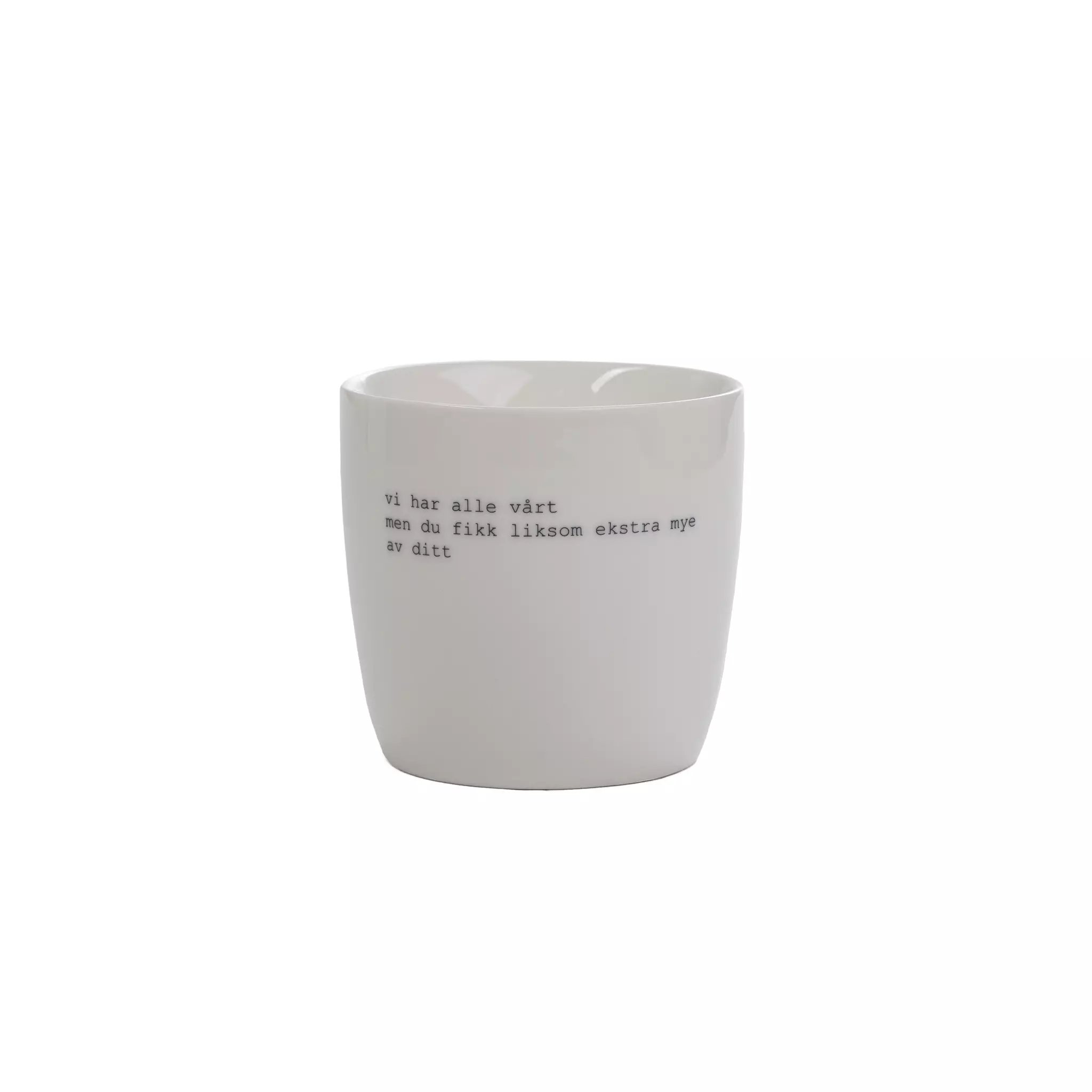 Vår samling av krus kommer i ulike farger, størrelser og utvalgte populære tekster.