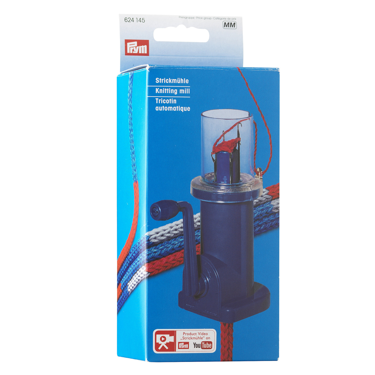 PRYM snormaskin, Knitting Mill: En liten halvautomatisk "strikkemølle" med håndvev for å lage strikkede tuber av garn. - Lett å bruke, også for nybegynnere. - Inkl. instruksjoner, vevhåndtak og vekter. Produktinformasjon: Knitting Mill er så lett å bruke at også grunnskoleelever kan lære seg å strikke tuber i alle farger. Etter at du har trædd garnet gjennom de nedre og øvre sporene, kan det lett gli inn i midtakselen. Deretter behøver du bare å følge med på krokene den første sveiven, etter det er det bare å veve i vei. Etter hvert kommer den ferdigstrikkede tuben ut nederst og du kan avslutte når den har nådd ønsket lengde. Den fungerer best med garn beregnet for heklenål 3-3,5 mm. Pakken inneholder en brosjyre med detaljerte instruksjoner.