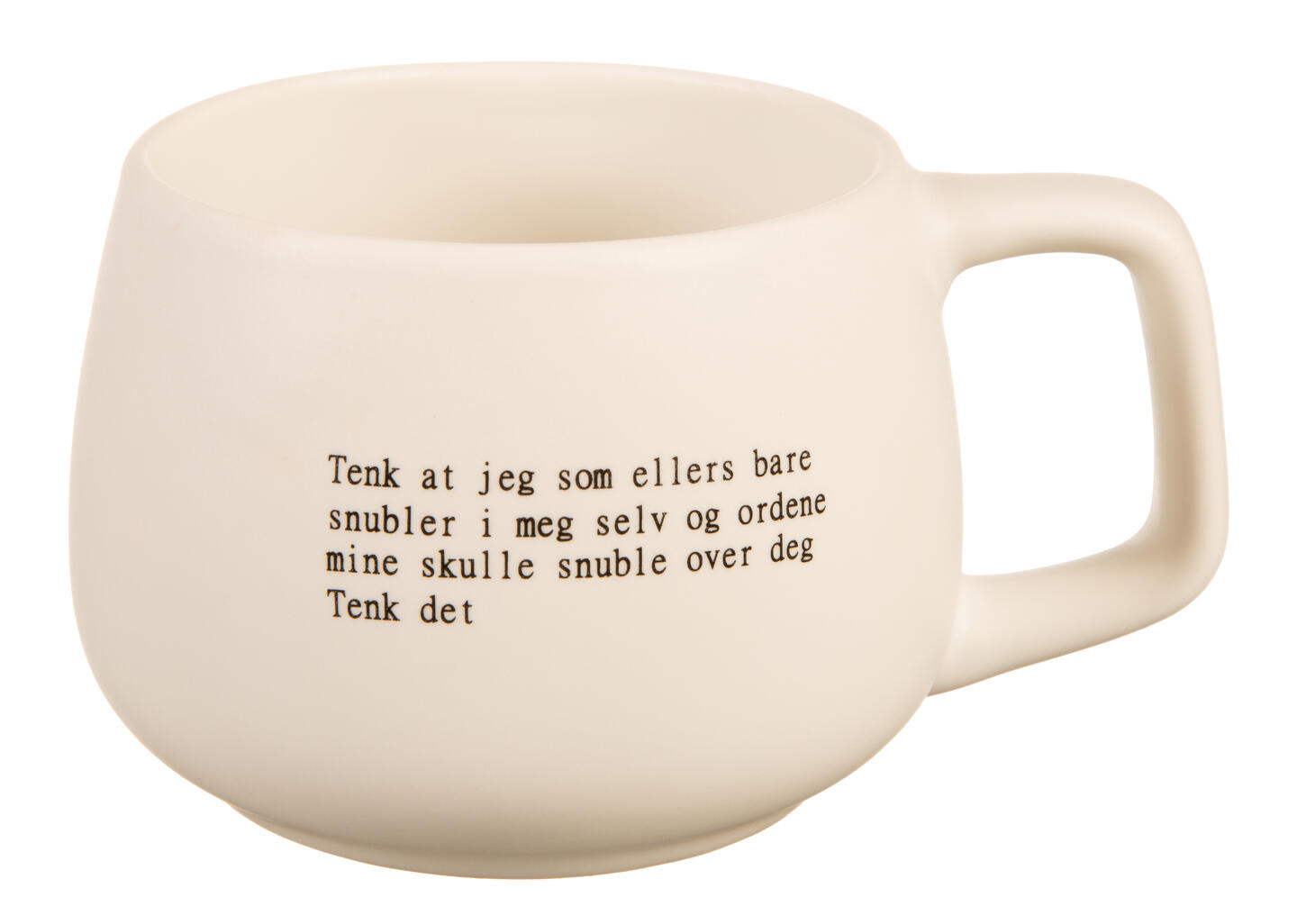 Krus hvit m/sort Tenk og snuble Tjomlid