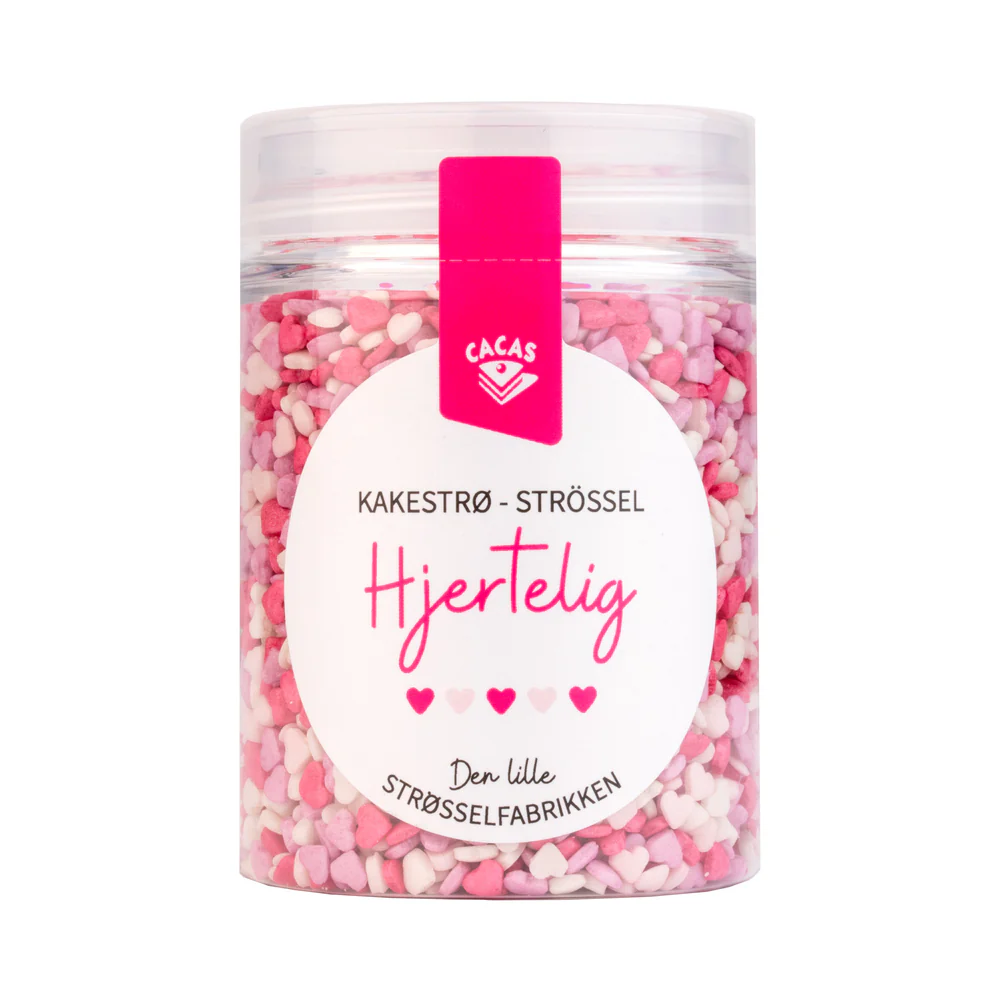 Miksen består av minihjerter i nydelige rosa nyanser.