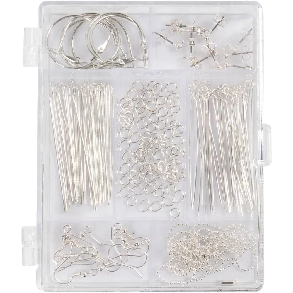 Drømmer du om å lage dine egne smykker? Da er smykkestartsettet vårt det rette valget. Settet inneholder de viktigste smykkene du trenger for å lage mange ulike typer smykker. I dette startsettet finner du kreoler, franske ørekroker og klassiske ørestikker til å lage øreringer med, sammen med perlestav og kulekjeder i to versjoner – slik at du har masse å velge mellom..