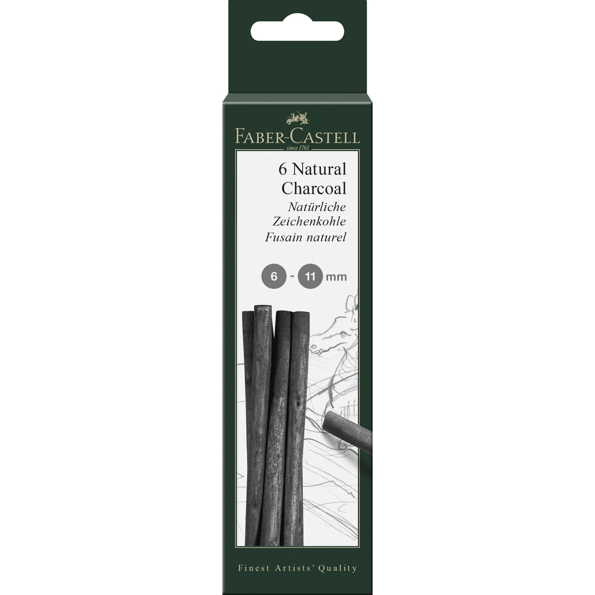 PITT tegnekull natural i sett, naturlig tegnekull fra Faber-Castell i høyste kvalitet, fett- og oljefrie. Pris pr. sett. Ø ca. 6-11 mm. 6 stk.