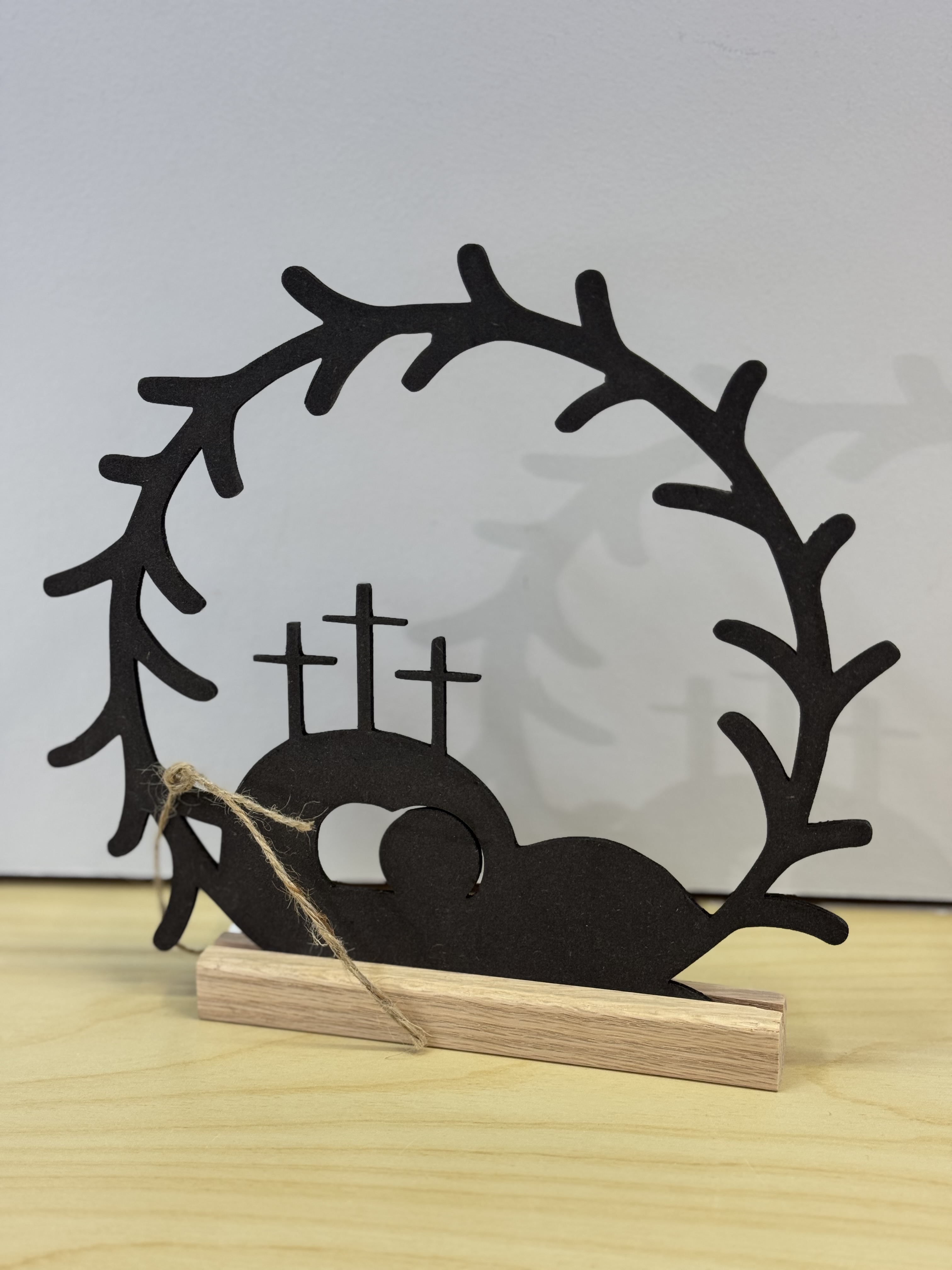 Påskepynt Krans med kors og grav sokkel