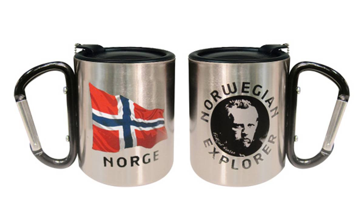Termokopp med lokk, flagg og Nansen, sort karabinkrok