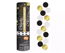 Konfetti Kanon gull/sort/hvit 15 cm circles