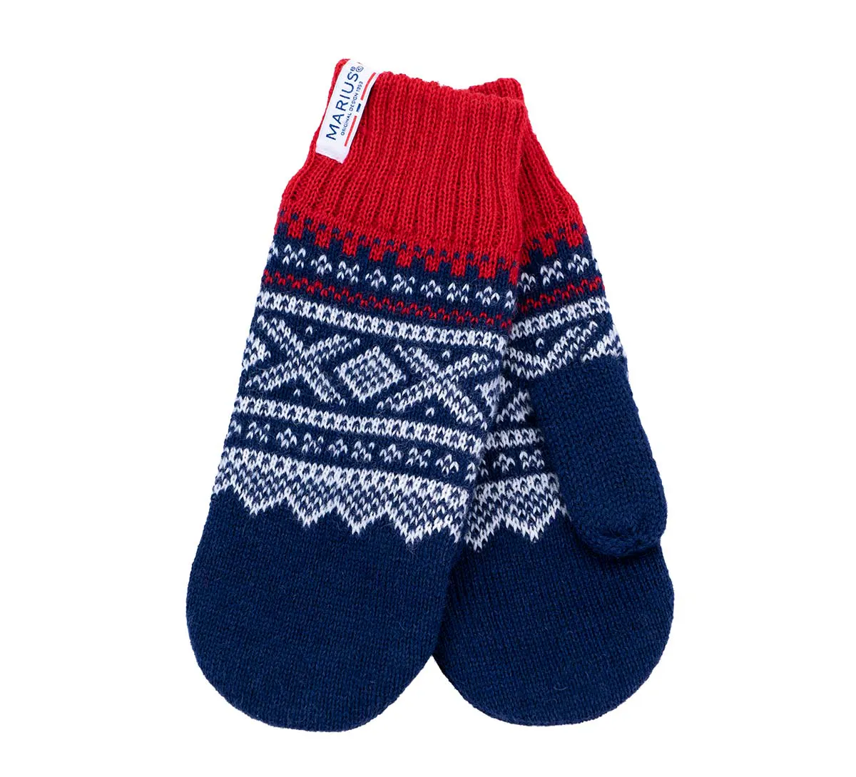Blå ullvotter med MARIUS® mønster