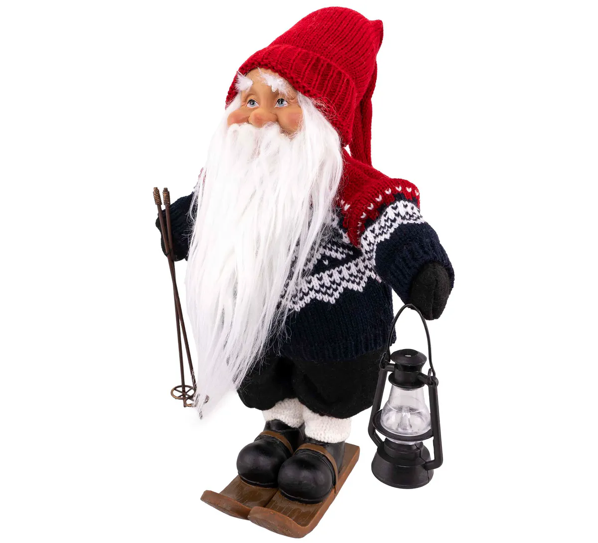 Koselig MARIUS®-nisse ikledd blå genser og nikkers og med ski på bena. Gjør deg klar for julen med herr og fru MARIUS®-nisse!