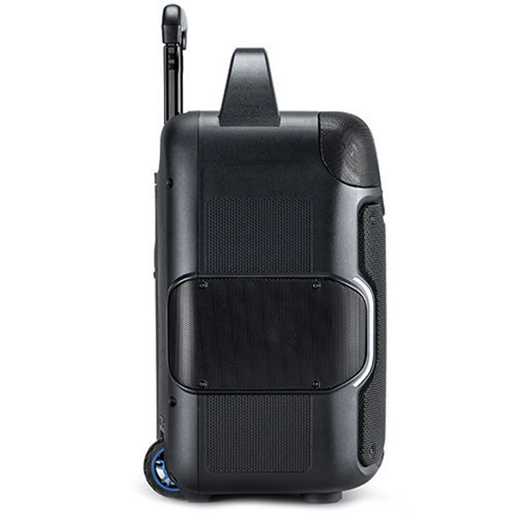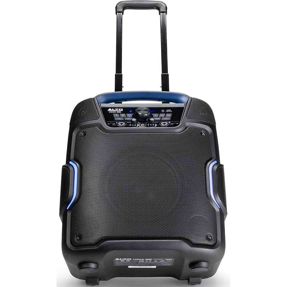 ALTO ÜBER FX2 er lett å transportere takket være det innebygde teleskophåndtaket og hjulene. Oppbevar eiendelene dine mens du lader mobilenheten i oppbevaringsboksen på toppen av høyttaleren. Du finner en praktisk flaskeåpner på den ene siden og den innebygde stemningsbelysningen på fronten smelter perfekt inn i miljøet når kvelden nærmer seg.