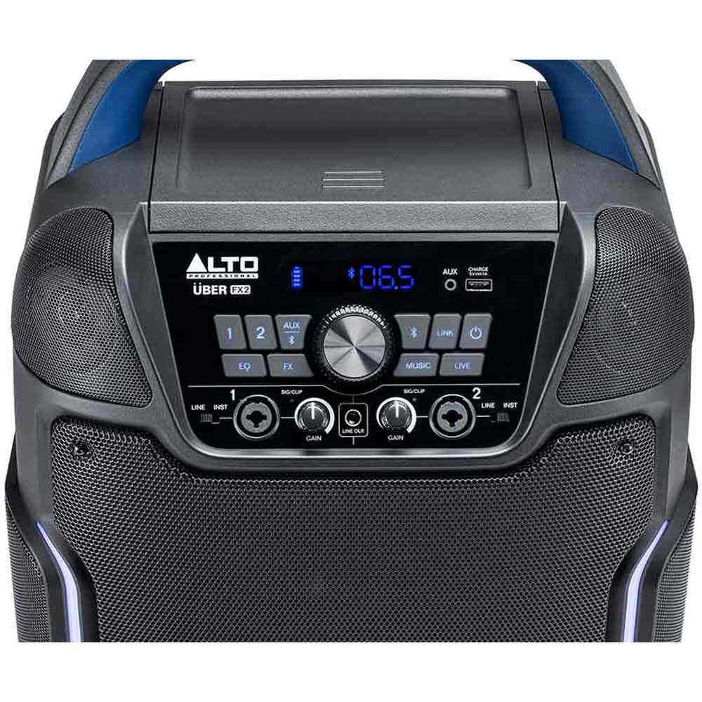 I tillegg til Bluetooth 5.0 har ÜBER FX2 en innebygd 2-kanals mikser med individuelle volumkontroller, EQ og digitale effekter for mikrofoner, instrumenter og linjeinnganger. To ekstra 3,5 mm aux-innganger gir enda flere tilkoblingsmuligheter.