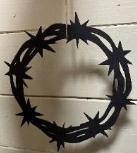 Denne kransen er til å henge, utskjært i tre, ei sterk utgave av MDF.