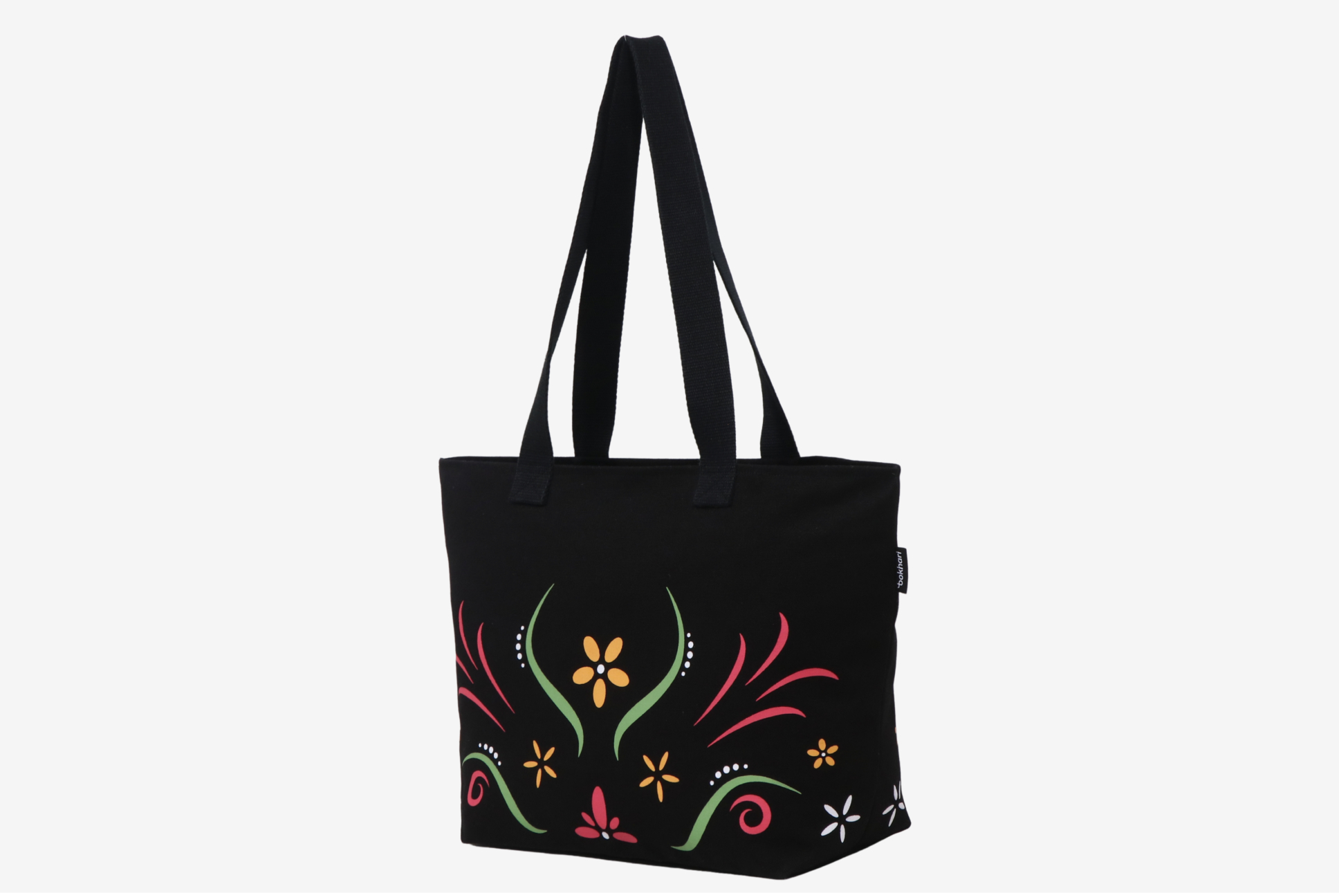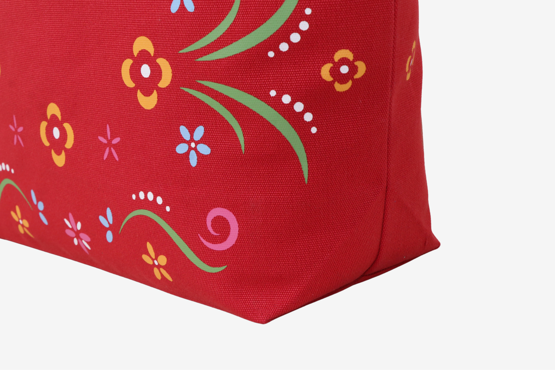 Bunadsveskas mønstre er utviklet av det prisvinnende designstudioet Tank, med utgangspunkt i norske bunadstradisjoner fra hele landet. Gjennom en dyp analyse av eksisterende mønstre, er sentrale grunnelementer løftet frem og satt sammen på nytt. Slik bygger Bunadsveska videre på vår felles kulturarv – samtidig som den introduserer en moderne tolkning gjennom mønster, fargebruk og funksjon.