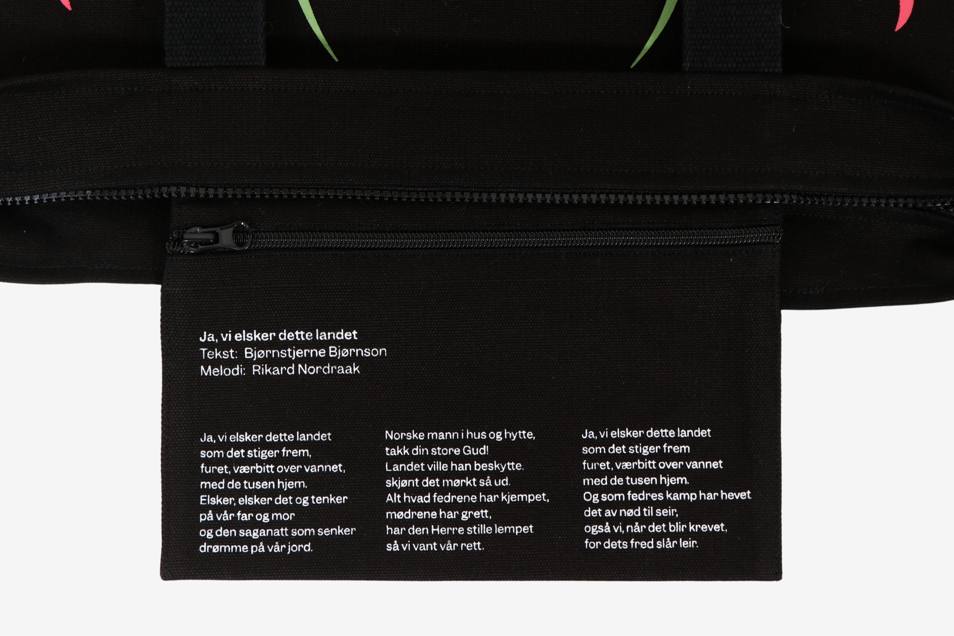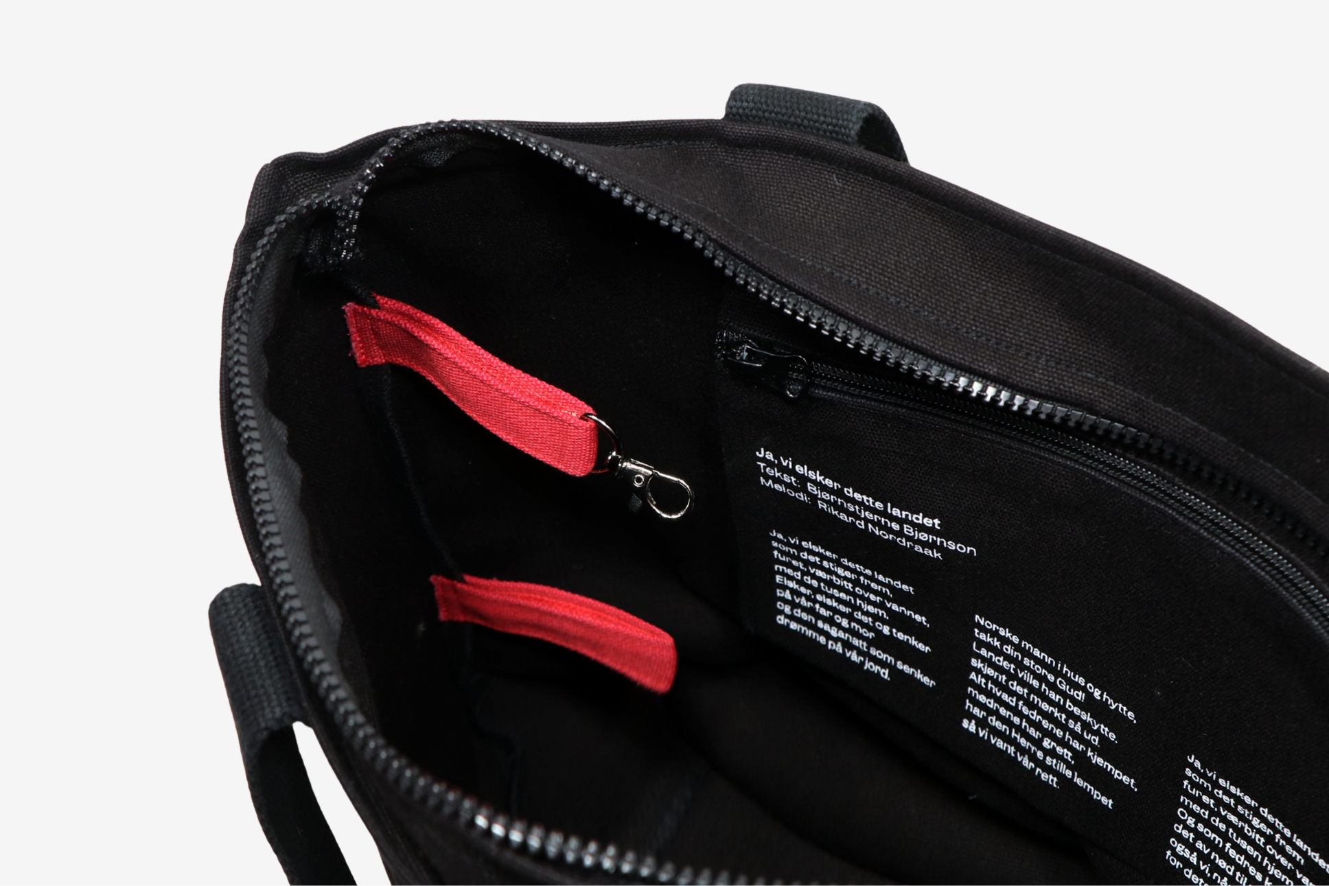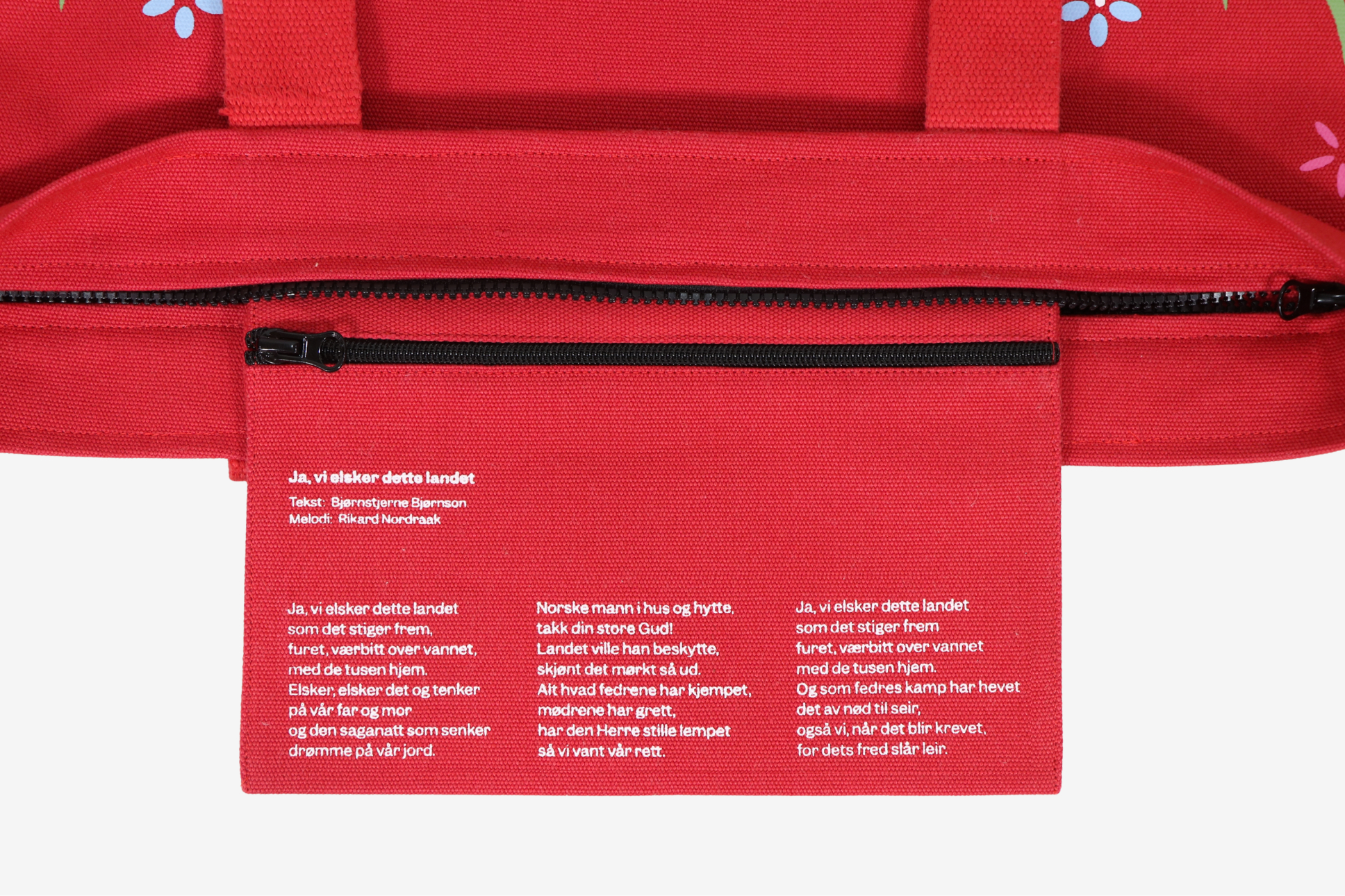 Med innerlomme, flaggfeste, nøkkelhempe og glidelås. Og nasjonalsangen trykket på innsiden – som en liten jukselapp, om du skulle få jernteppe på selve festdagen. Små hjelpsomme, detaljer for lange dager. Et tilbehør som gjør tradisjon litt mer praktisk– og litt gøy.