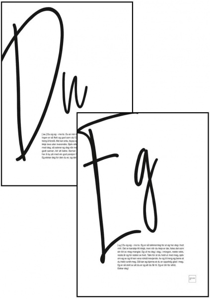 Nynorsk versjon! Etter mange forespørsler fra våre følgere har vi nå laget en versjon av DU & JEG på moderne nynorsk! En fantastisk kjærlighetserklæring! En fin gave til den kjæresten eller samboeren. Denne teksten passer både til de som er gift og ikke, og par av likt og ulikt kjønn.