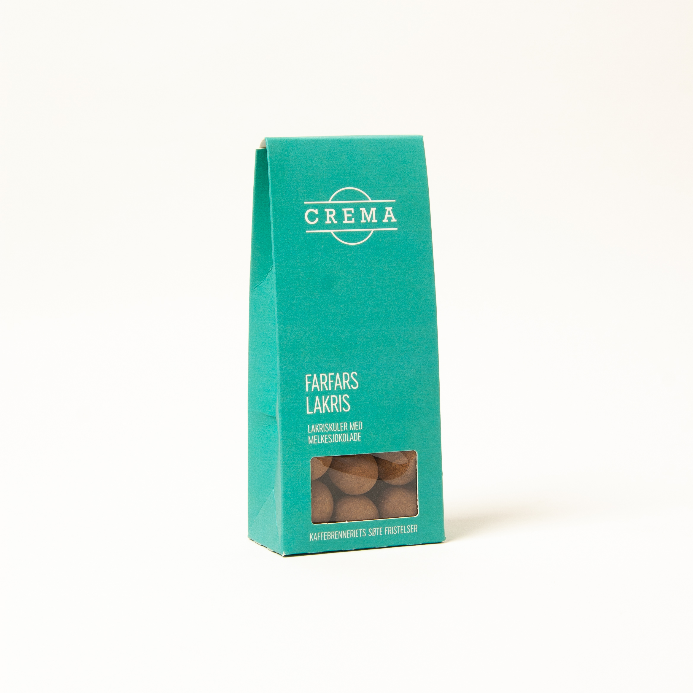 Håndlaget nydelig lakris med melkesjokolade og lakrispulver.