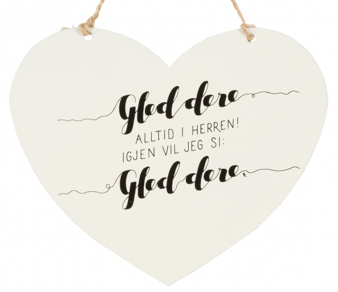 Hjerteskilt Gled dere... hvitt 13x11cm