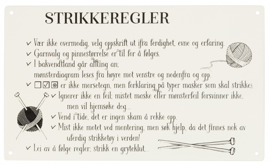 METALLSKILT, STRIKKEREGLER HVIT 27X16CM