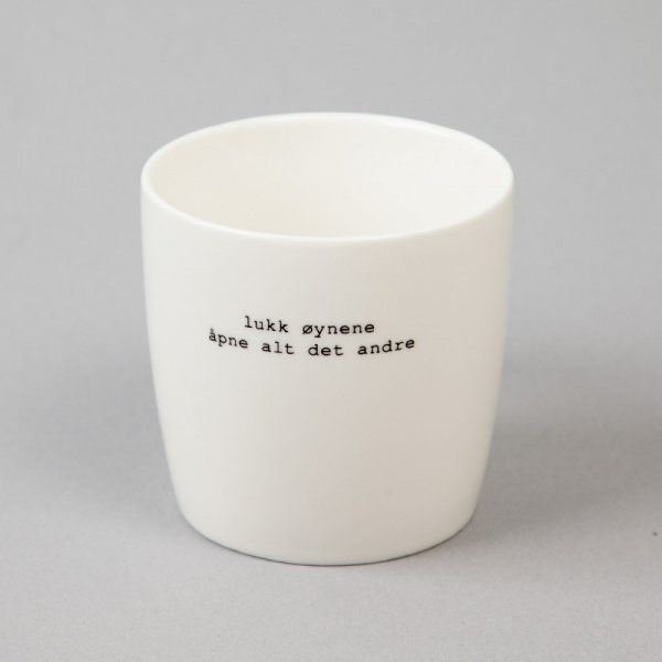 Bestselger! Nydelige porselenskrus med tekster av Trygve Skaug. Tåler oppvaskmaskin. Mål H 9cm, Ø 9cm.