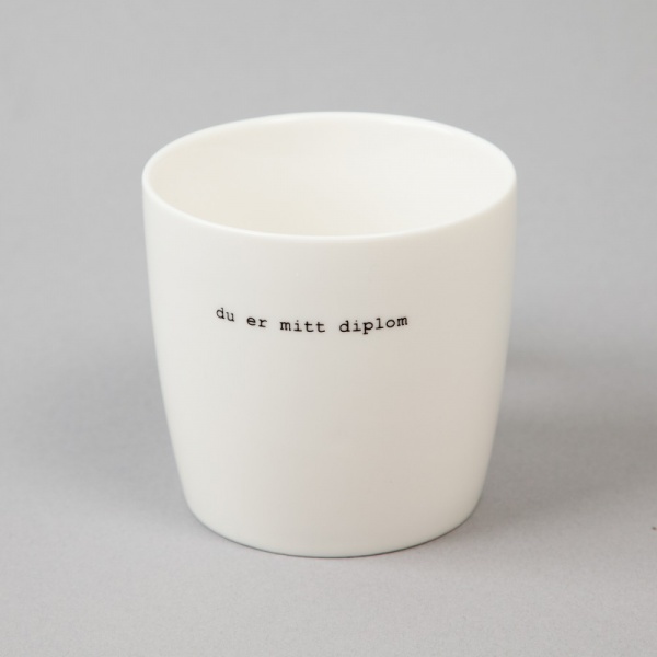 Bestselger! Nydelige porselenskrus med tekster av Trygve Skaug. Tåler oppvaskmaskin. Mål H 9cm, Ø 9cm.