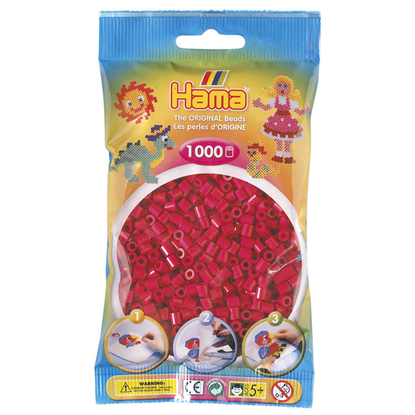 Rørperler midi, Ø 5 mm, lengde 5 mm. Pakke med ca. 1.000 stk. Fra 5 år. Cerise Gjennomfargede