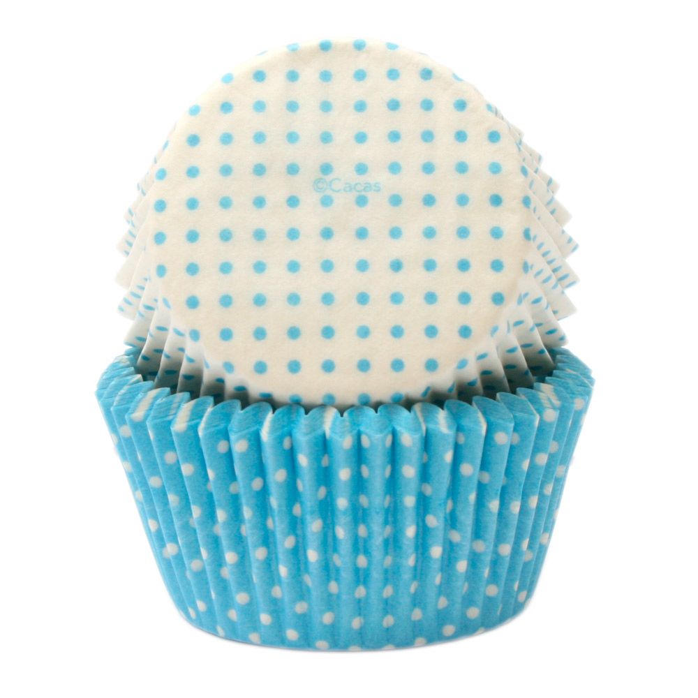 MUFFINSFORM LYSBLÅ/HVITE PRIKKER 100STK