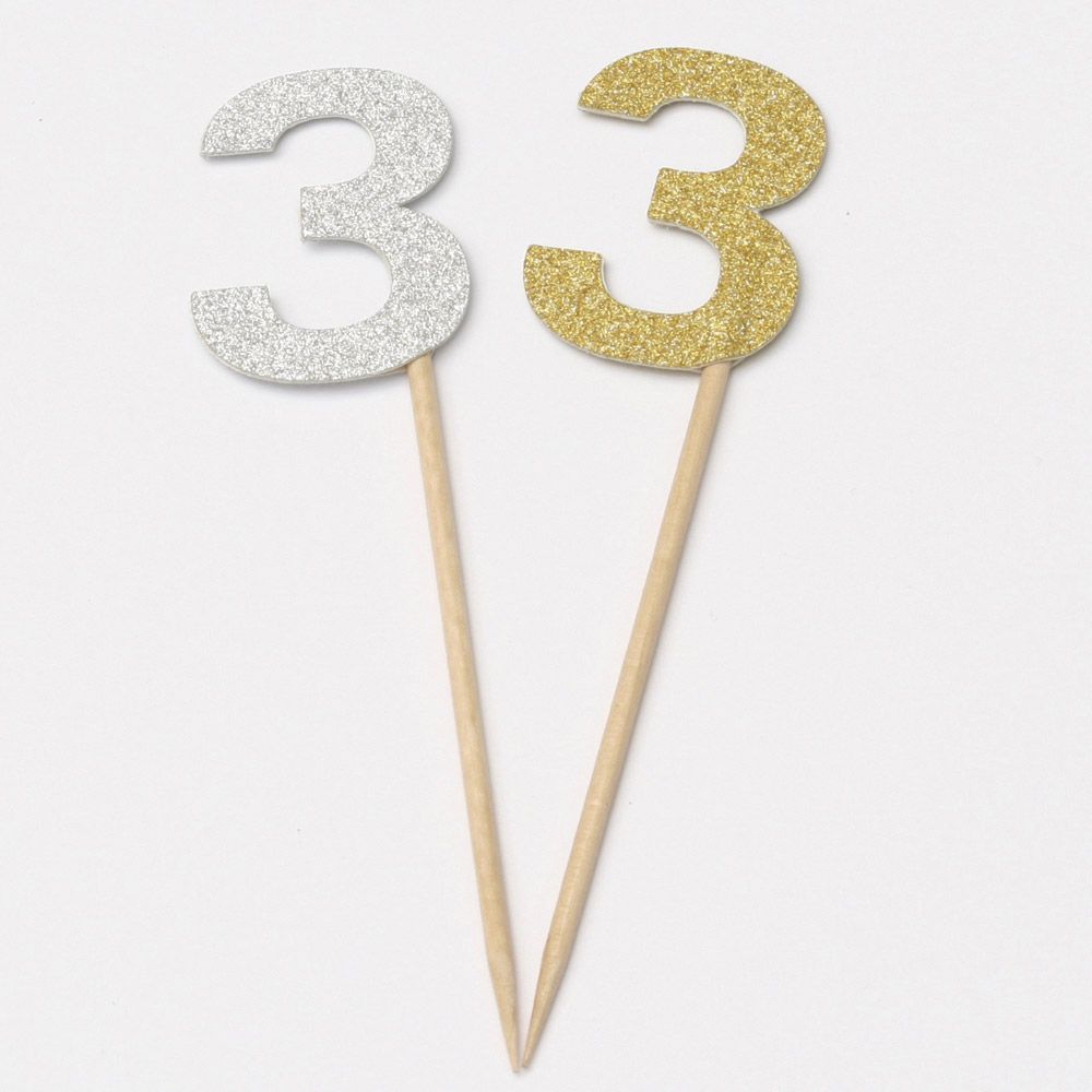 Tall 3 sticks med tall i papp, 12 stk ass Gull/Sølv i pakken.