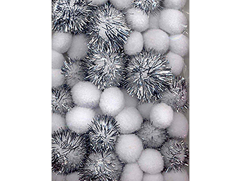 POMPONGER SETT M/GLITTER - HVIT - 50ASS.
