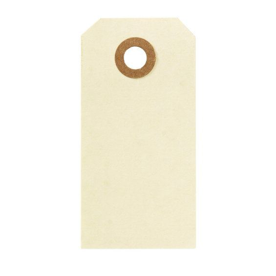 Manila Tags, etiketter med forsterket hull, Ø 6 mm. Til pakker, gaveposer, julegaver m.m. - Creme 4x8 cm. 20 stk.