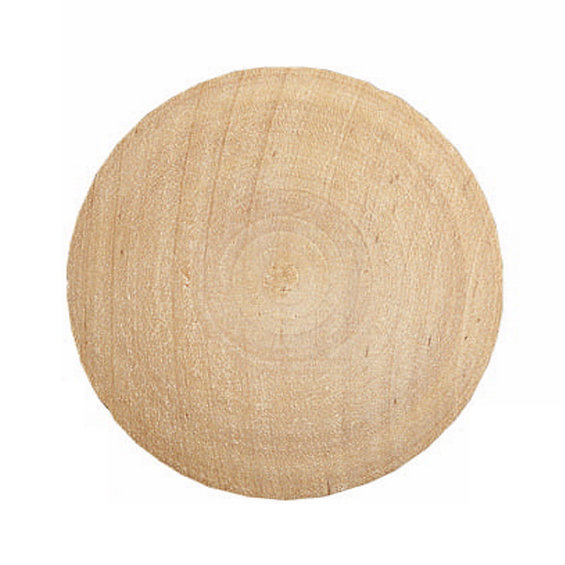 Treknapper, av tre. Med flat bakside og konveks framside. Oppgitte mål er diameter/tykkelse. 50/7 mm. 6 stk.