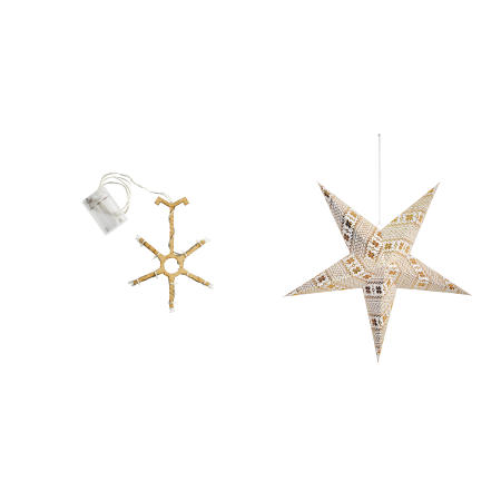 Adventsstjerne, av papir, til å brette sammen. Pris pr. stk. LED, hvit/gull Ø 60 cm. Inkl. LED belysning, 2 Watt. Drives med 3 AA batterier (ikke med).