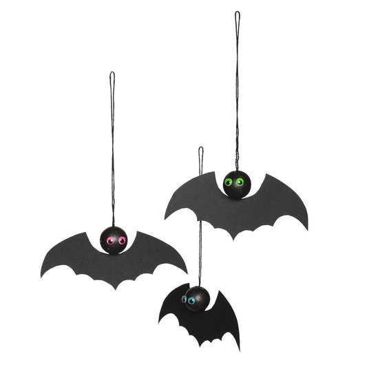 Batsy Buddies, hobbysett for barn - lag flaggermus til Halloween, ca. 16x7 cm. Innhold: isoporkuler Ø 30 mm, bevegelige øyne, utskjærte papirkropper, maling, pensel, trestikker, lim og garn samt veiledning. Materialer til 5 stk. Fra 4 år.