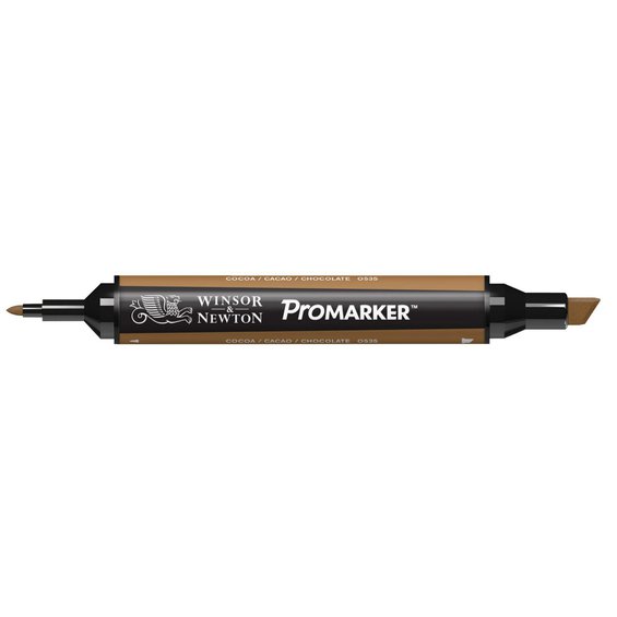 Promarker twin-tip. Professional twin-tip marker. Tusj med to ulike spisser - til detaljarbeider og til fargelegging. Permanent. Egnet til alle områder innen kunst, design og hobby. De brukes like gjerne av arkitekter, serietegnere og mange illustratører som av nybegynnere. De er også meget gode til scrapbooking og til stempelmotiver. En utmerket egenskap er at fargeleggingen blir helt jevn også på store flater. En annen egenskap er at de er transparente, noe som betyr at to farger sammen kan gi en ny farge. Husk å farge over med den andre før den første har tørket. Vil man ha lysere farger, bruker man Promarker Blender. Cocoa