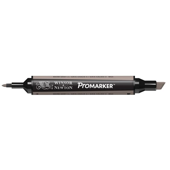 Promarker twin-tip. Professional twin-tip marker. Tusj med to ulike spisser - til detaljarbeider og til fargelegging. Permanent. Egnet til alle områder innen kunst, design og hobby. De brukes like gjerne av arkitekter, serietegnere og mange illustratører som av nybegynnere. De er også meget gode til scrapbooking og til stempelmotiver. En utmerket egenskap er at fargeleggingen blir helt jevn også på store flater. En annen egenskap er at de er transparente, noe som betyr at to farger sammen kan gi en ny farge. Husk å farge over med den andre før den første har tørket. Vil man ha lysere farger, bruker man Promarker Blender. Warm Grey 3