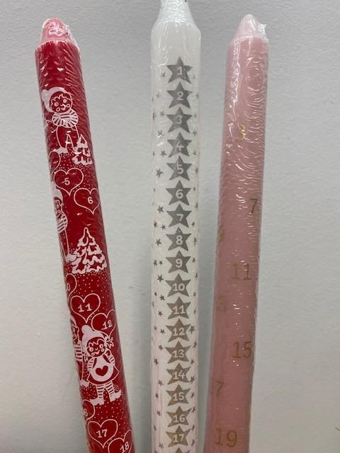 KALENDERLYS 30CM.4AS.24M