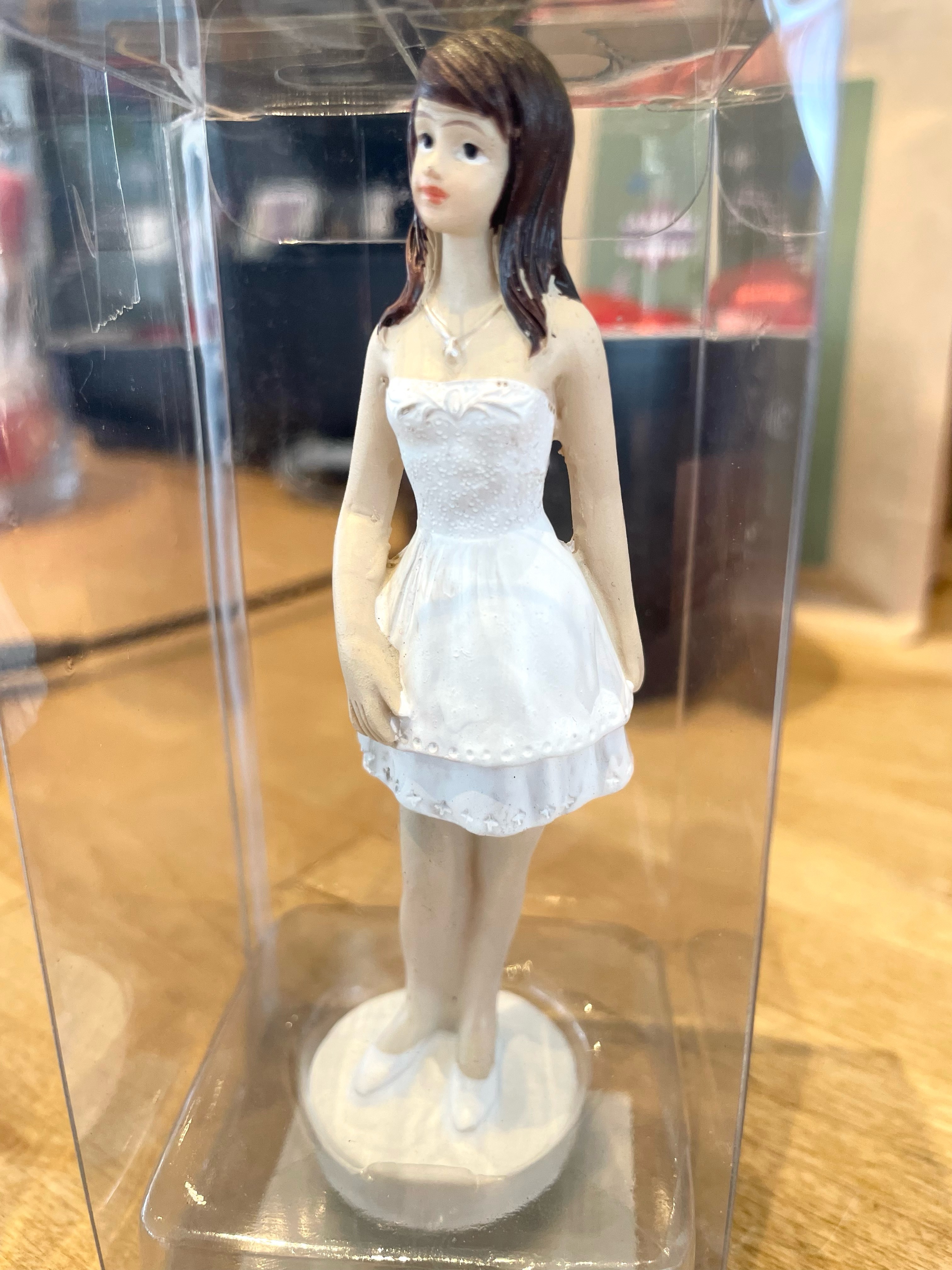 10cm Sort/Blå dress, brunt hår eller jente lyst/mørkt hår hvit kjole