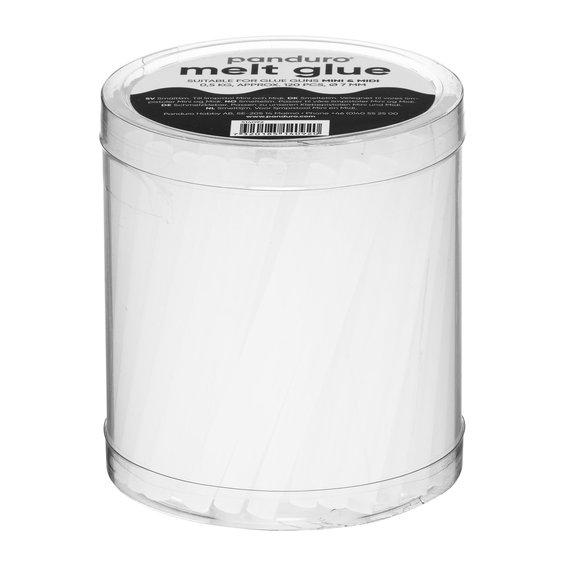 Ufarget smeltelim, Ø 7 mm, lengde 10 cm. Passer til våre limpistoler Mini (514004) og Midi (514003). Ca. 120 stk.