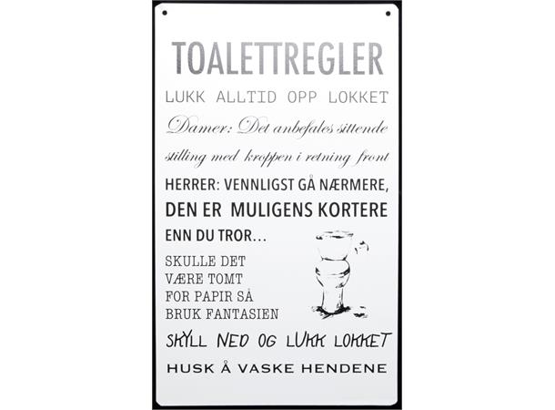 Metallskilt Toalettregler m/tekst hvit