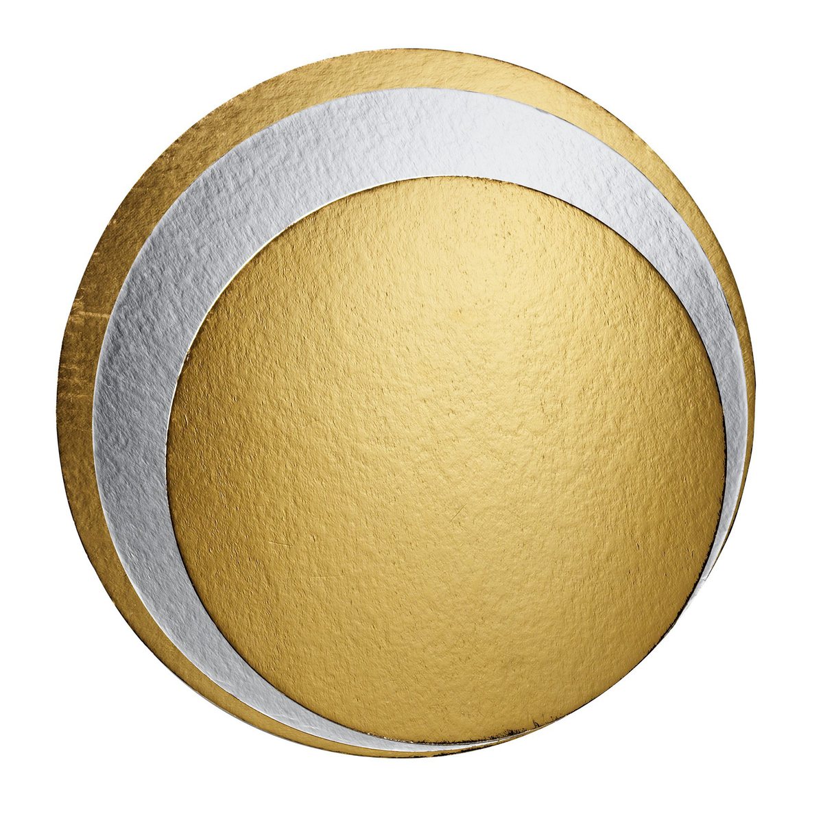 Kakeunderlag, av kartong. Ø 24, 28 og 32 cm, sølv på den ene siden og gull på den andre. Pakke med 3 stk.