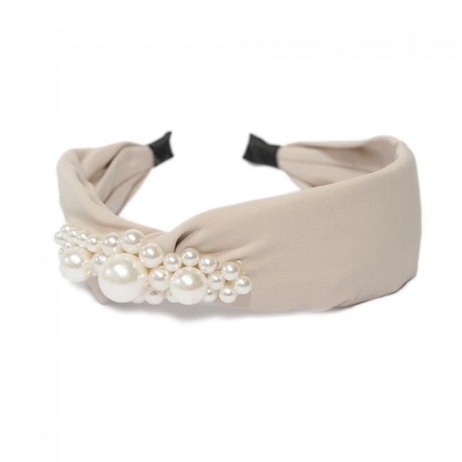 Hårbøyle i tynt stoff med dekorative perler.