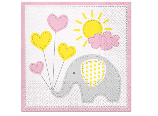 Serviett lunsj 20 stk Cute Elephant Rosa