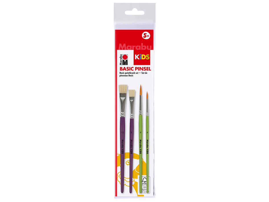 Penselsett for barn. Inneholder to flate svinebustpensler i str. 8 og 12 og runde nylonpensler i str. 4 og 8.