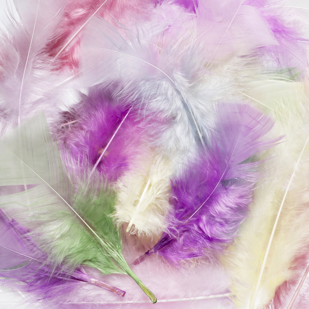 Gigantpose med pastellfargede fjær, for den som har riktig høytflygende planer og trenger haugevis av fjær. Posen inneholder rundt 200 stk. 5-10 centimeter lange fjær i ulike pastellfarger.