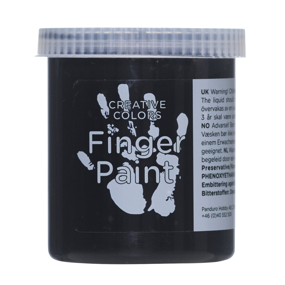 Fingermaling, en klebrig og kreativ klassiker som er de fleste barns første bekjentskap med maling og kreativitet. Pakken inneholder 80 ml maling. Malingen er best egnet til papir, papp, tre og stein, og kan spes med vann ved behov. Maling er lettarbeidet, dekker godt og kan også påføres med pensel og svamp. Av åpenbare grunner anbefaler vi robuste klær / forkle samt rikelig med avispapir på arbeidsområdet – ellers kan hele huset ditt plutselig få et nytt utseende. Fra 2 år. Fingermalingen oppfyller EUs særskilte krav til fingermaling. Den inneholder f.eks. et bitterstoff som gjør at den ikke smaker så godt. Dette for at små barn ikke skal bli fristet til å spise malingen. Det er ikke farlig om barnet får i seg en liten mengde. Svart.