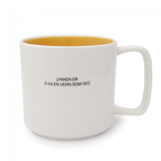 Kopp i keramikk med norsk tekst. Høyde 8,5cm Diameter 9cm.