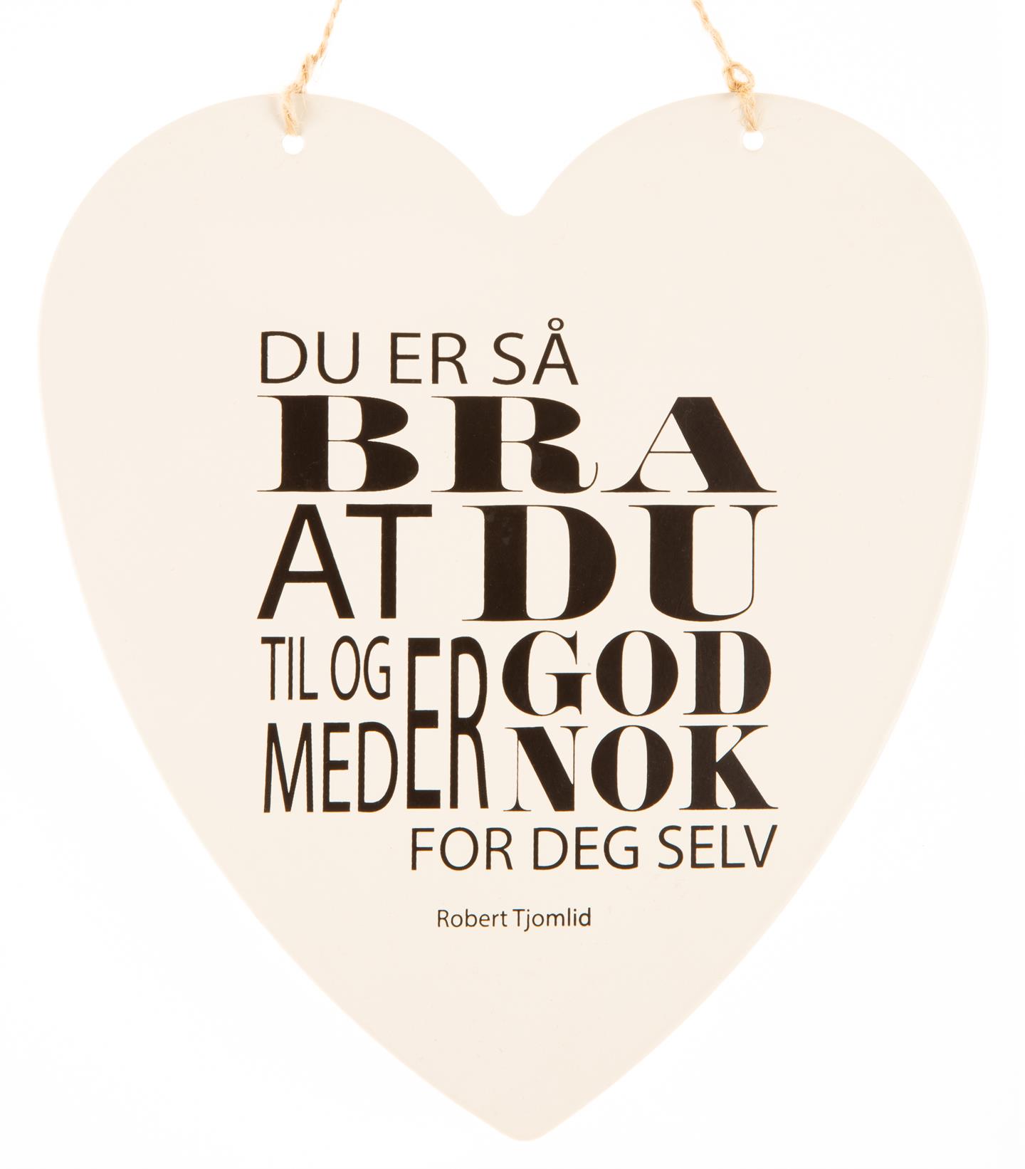 Hjerteskilt metall med tekst av Robert Tjomlid:
