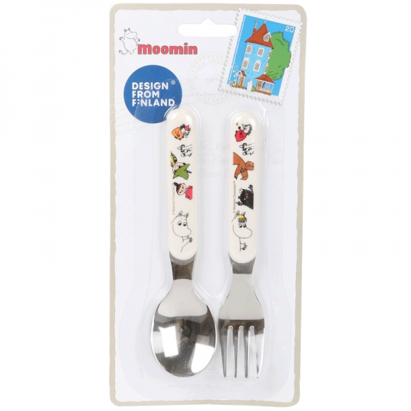 Sett med skje og gaffel til de minste. Tilpasset små barn som skal lære å spise på egenhånd.