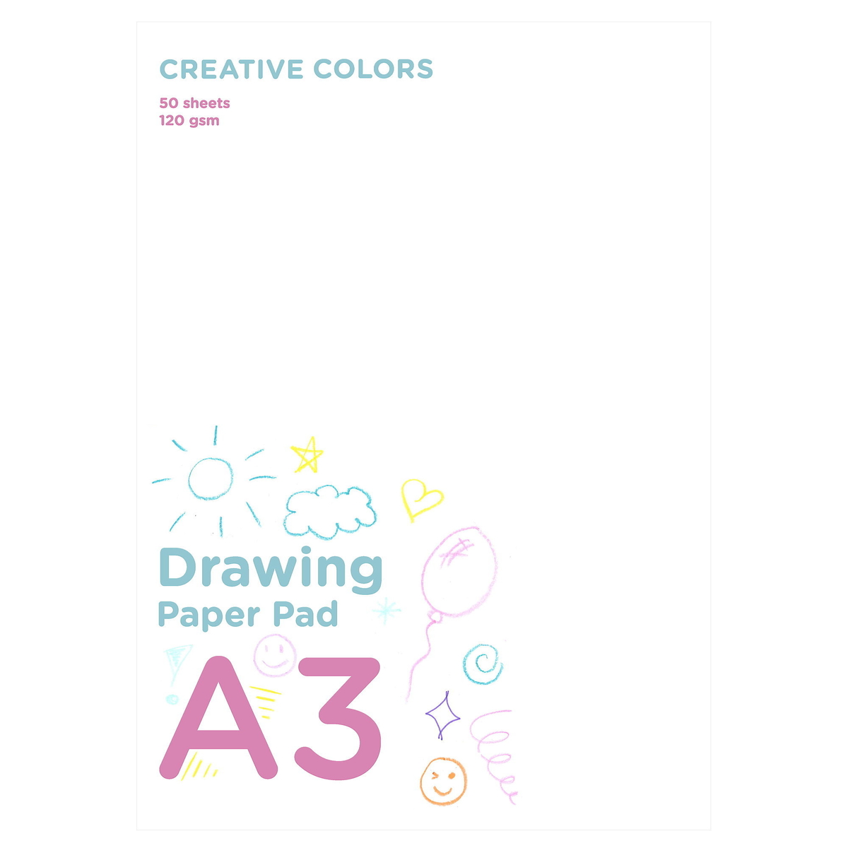 Creative Colors Drawing Pad, en stor blokk som egner seg ypperlig for barn og unge som ønsker å begynne å male eller tegne. Papirets godt tilmålte vekt og de mange arkene gjør den til en unik og allsidig tegneblokk som vil vare en god stund.
