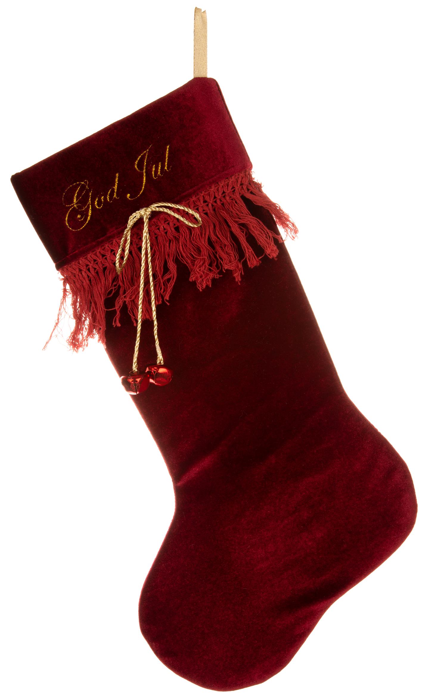 Julestrømpe rød m/gull God Jul