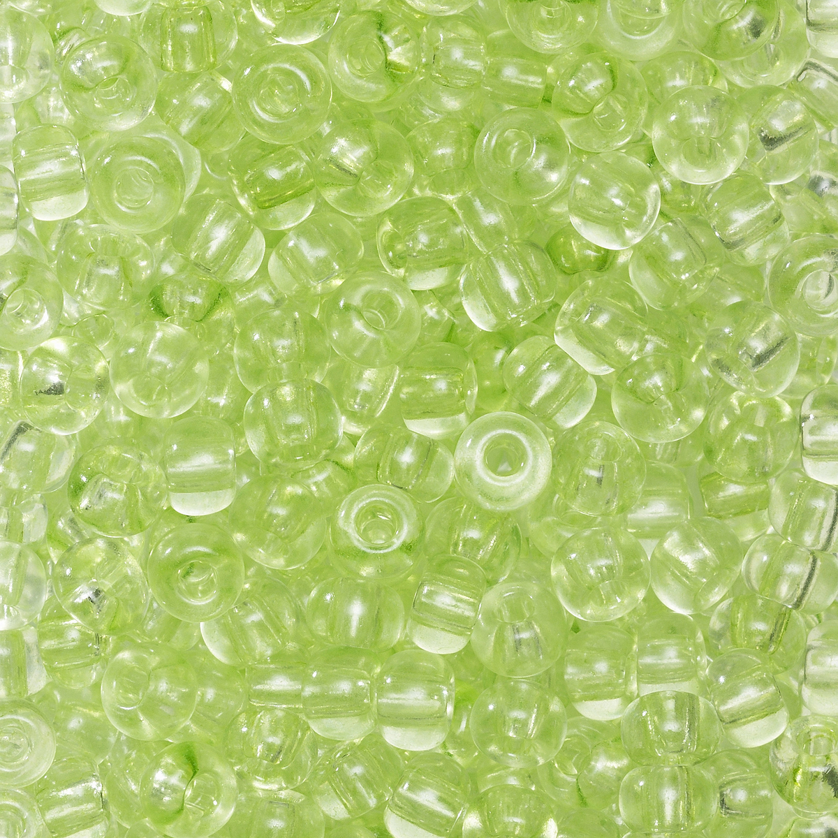 Rocaillesperler (6/0), av glass (preciosa), kalles også for seed beads. Dekorative perler som fås i mange lekre farger. Vakre å bruke både som detaljer eller som hovedmateriale i halskjeder, armbånd, mobilpynt m.m. Også perfekte å bruke i perlevev og dekorative å brodere med på f.eks. puter og vesker. Perlene er produsert i Europa i henhold til tradisjonell teknikk som garanterer høy kvalitet, størrelse Ø 3,7–4,3 mm. Hull ca. 1 mm. Innhold 30 g, ca. 390 stk. - Lys grønn transparent